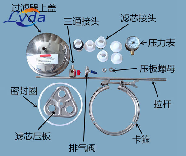 材质:圆柱形壳体,304或,316L不锈钢;配以多支滤芯